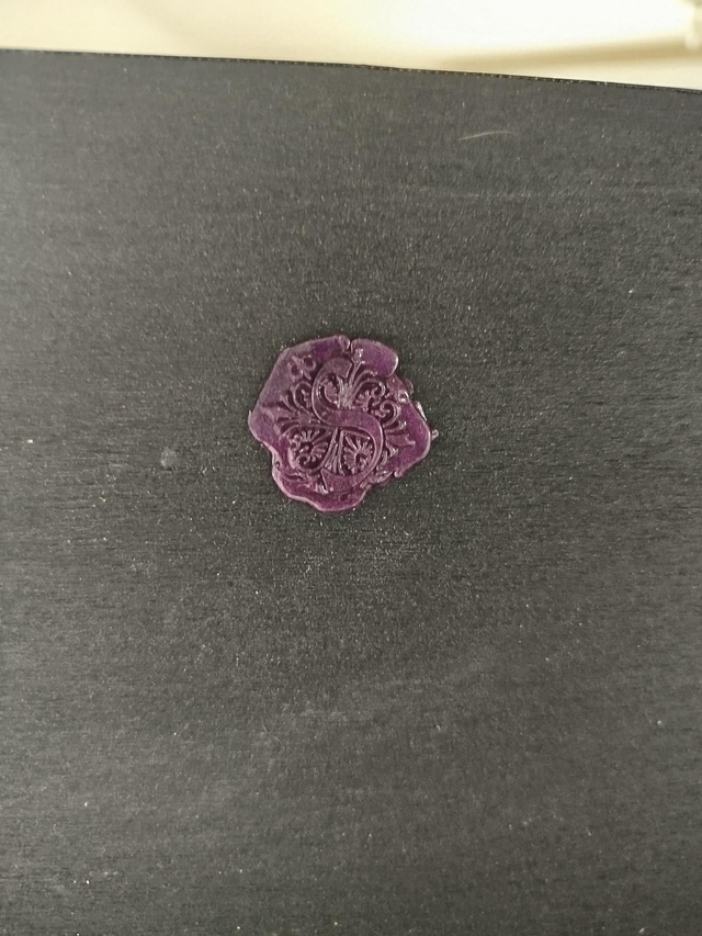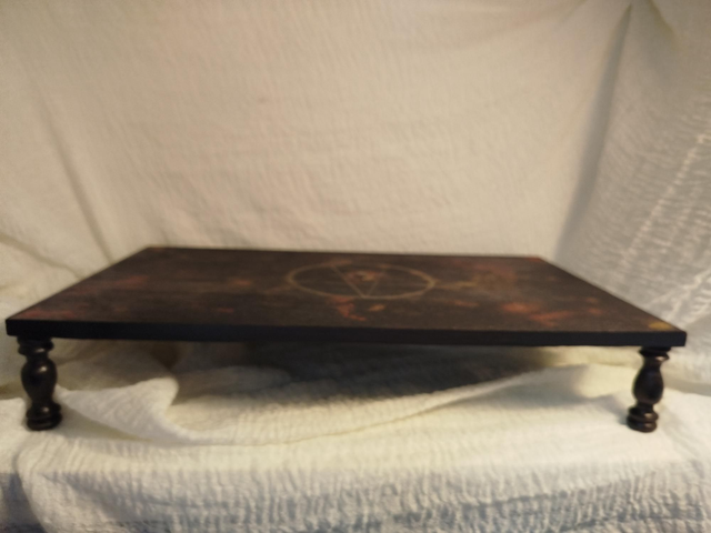 Autel 39*23,5cm en bois de récup, peinture acrylique, vernis marin et pierre oeil de tigre, sceau cire et cendre de sauge