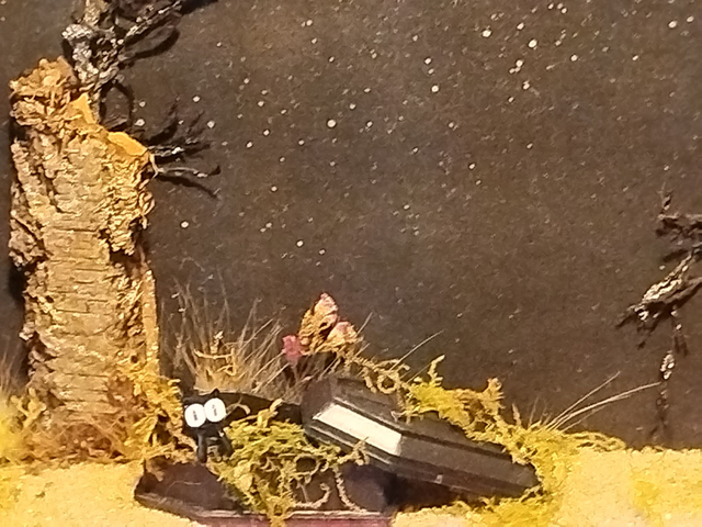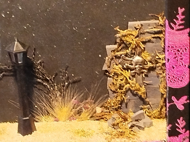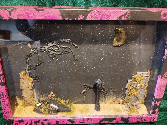 Fond aquarelle, personnage et éléments en résine, décor végétaux séchés et éléments naturels