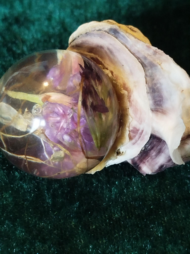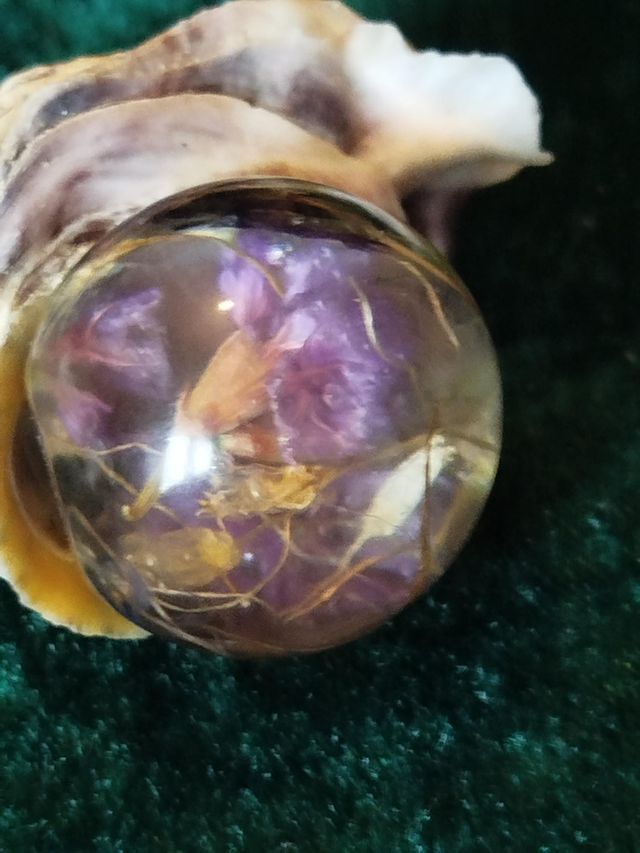 Boule en résine diamètre 4cm, trèfle et statice, coquillage