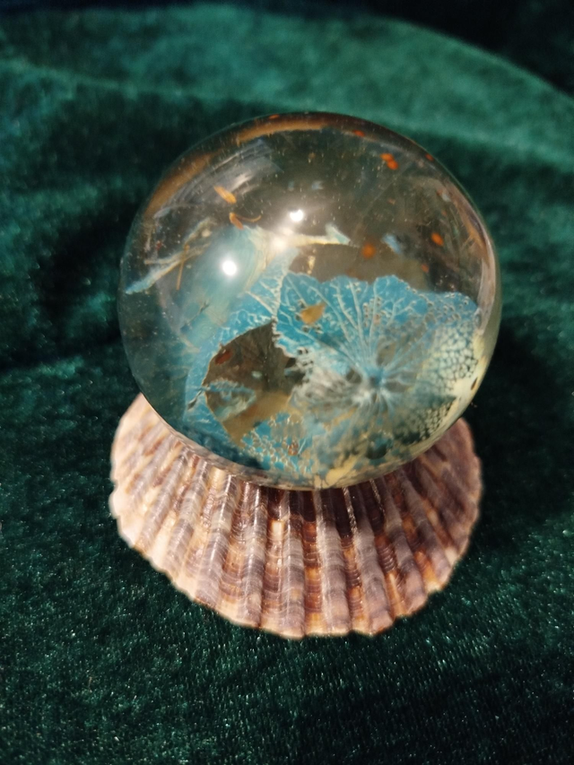 Boule en résine diamètre 6cm, pétales d'hortensia peintes à la main façon corail, coquillage