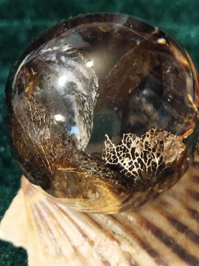 Boule en résine diamètre 5cm, pétales d'hortensia noires et argent peintes à la main, coquillage