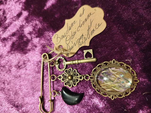 Broche obsidienne et bardane