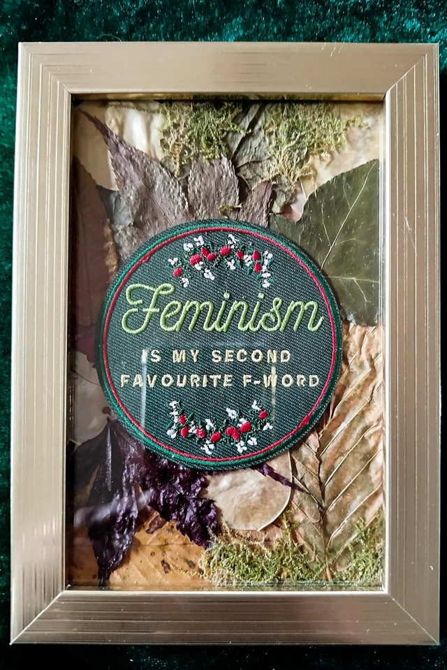 Cadre bois 10*15, peinture acrylique, végétaux séchés et patch tissus