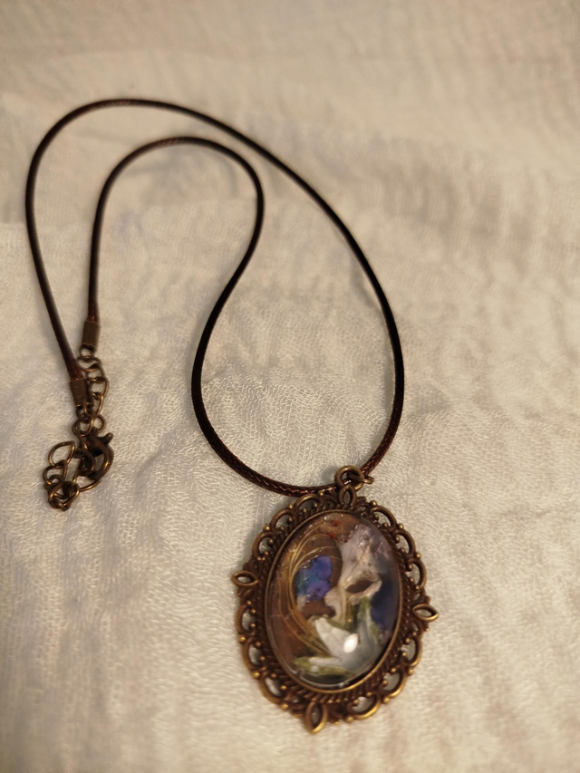 Métal bronze, dôme acrylique, cordon coton ciré et végétaux récoltés et séchés sur place
