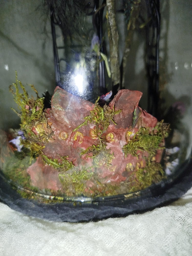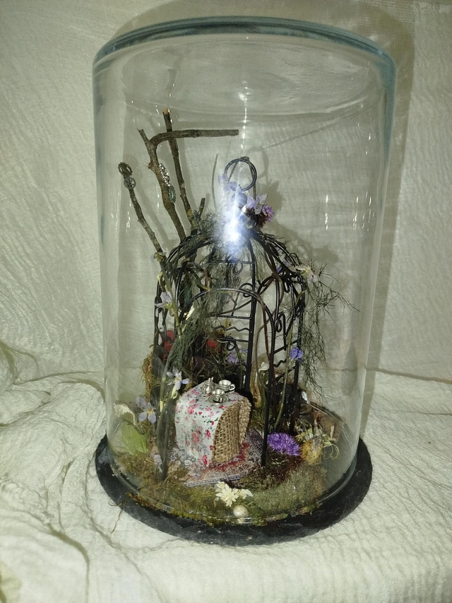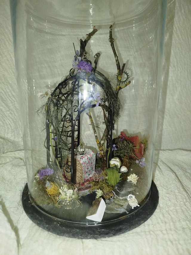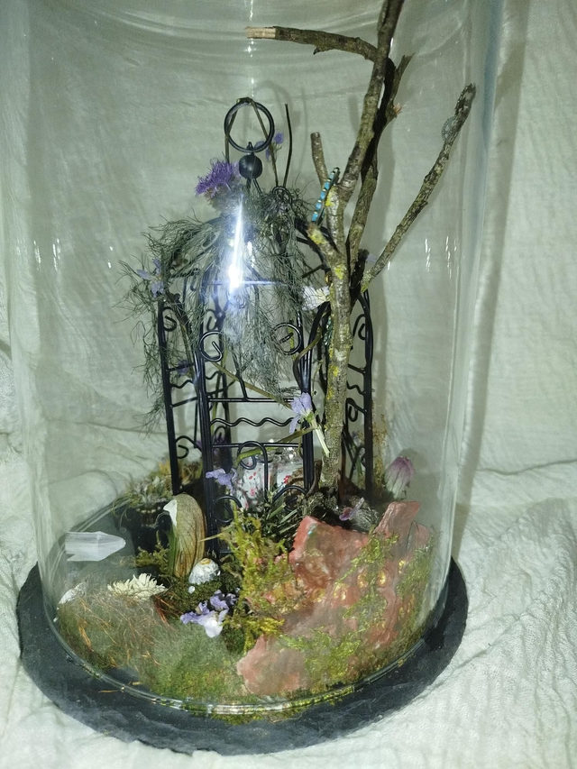 Socle ardoise, globe verre 30*20, végétaux séchés