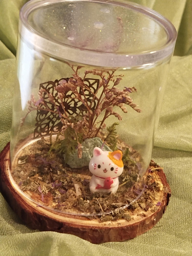 Golden acrylique environ 10*11, végétaux séchés et figurines en résine ou porcelaine.