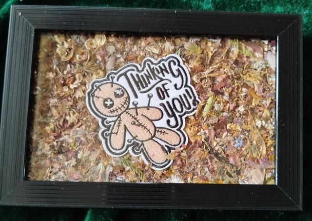 Cadre bois 10*15, peinture acrylique, végétaux séchés et patch tissus