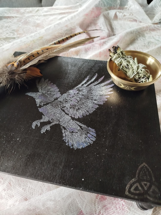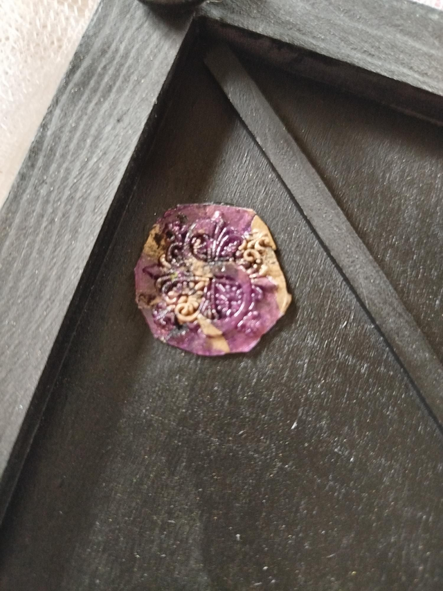 Bois de récup, peinture acrylique, sceau en cire et cendre de sauge