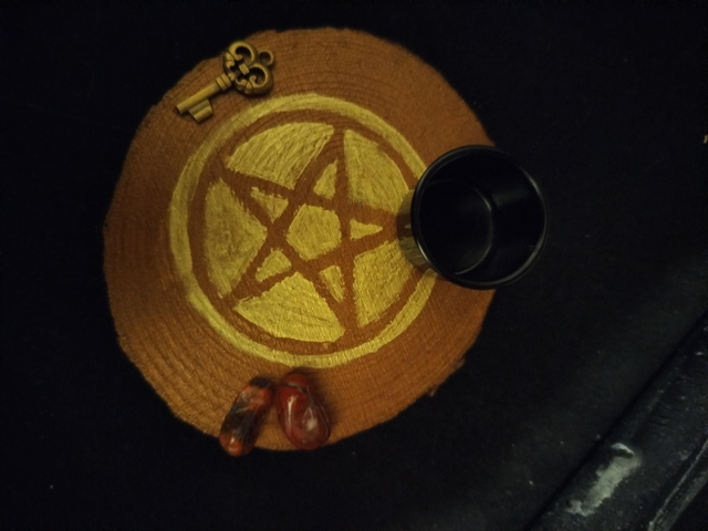 Socle bois diamètre 6cm , peinture acrylique, support bougie métal, pierres naturelles.